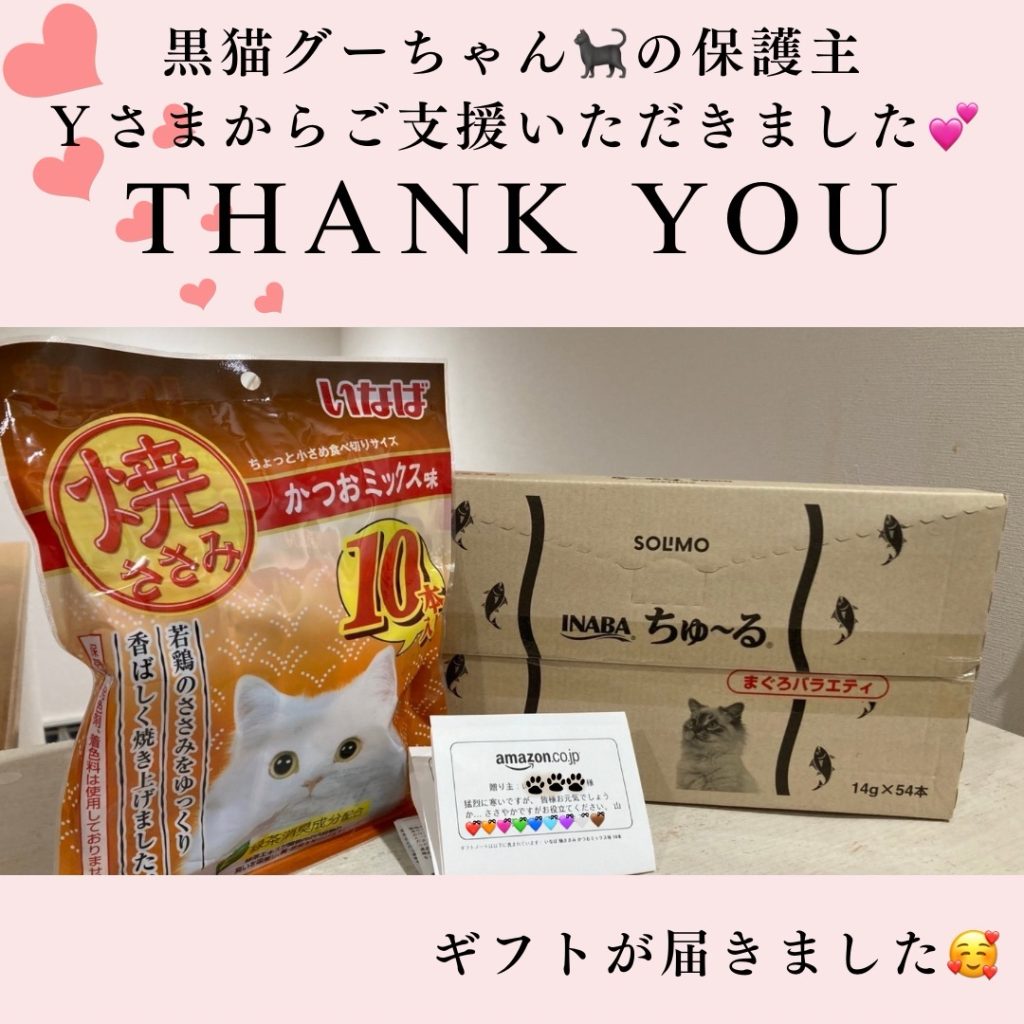 黒猫ぐーちゃんの保護主さまからグーちゃんにプレゼントが届きました