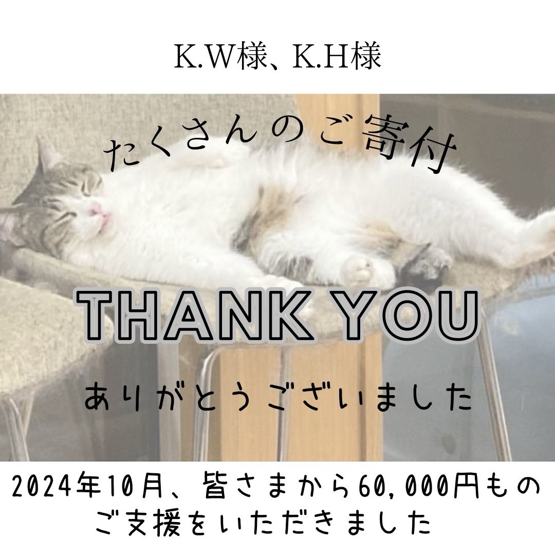 - 2024年10月の医療費ご報告10月の保護猫の医療費をご報告します。 ししゃも、こだち、しらい、三毛子、ちょび、ミノ、ドン、むぎ、はっぱ、クリオの10匹が、動物病院を受診し、処置を受けました。 かかった医療費の総額は、134,169円でした。 皆さま […]